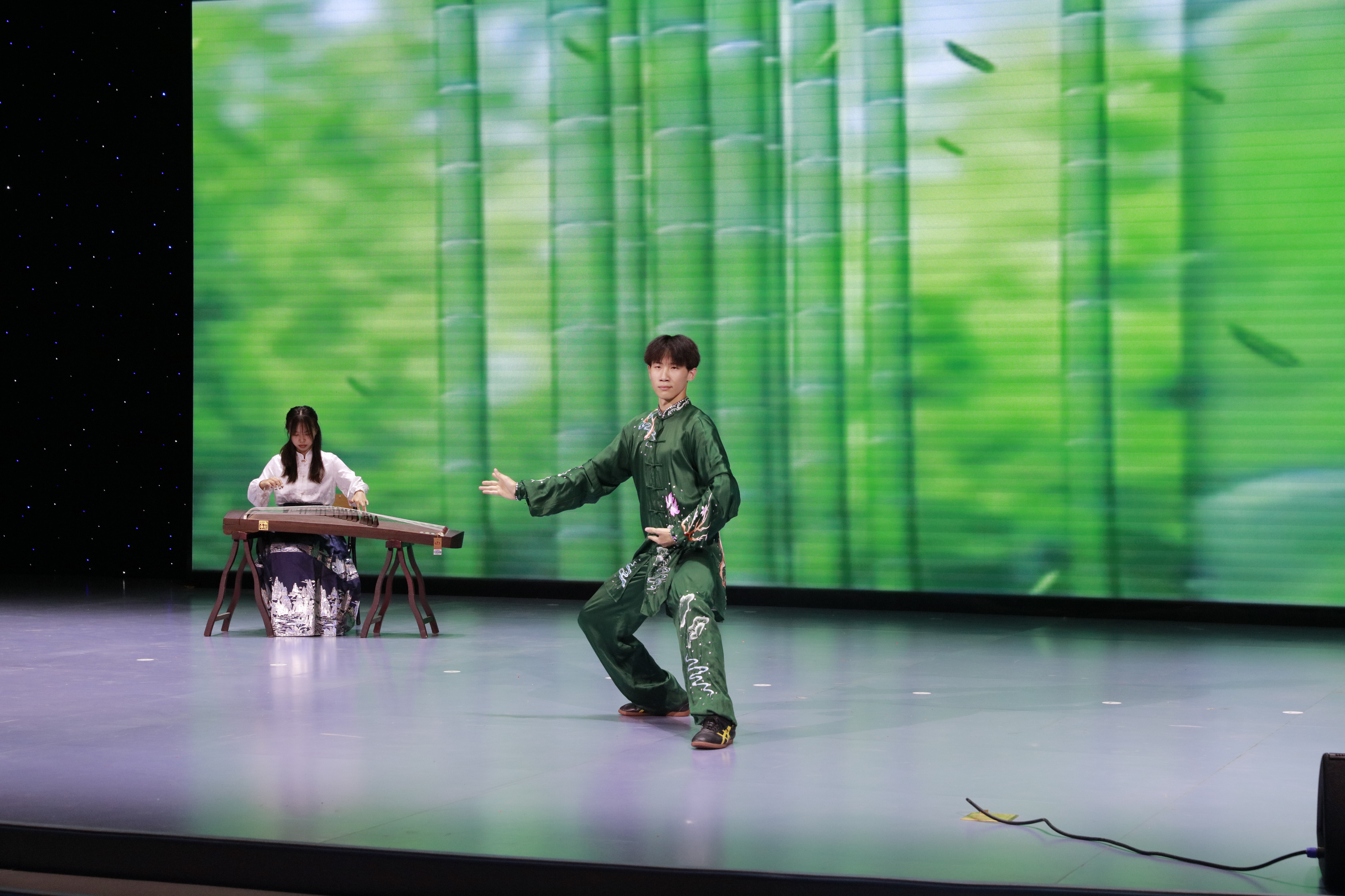 比赛以震撼人心的醒狮表演拉开了序幕。历史文化学院、生命科学学院与365英国上市分别来了《汉服飘逸展风韵,礼仪传承映华章》《本草有灵》《古韵华服》传统服饰走秀表演,穿越岁月长河,与千年前的璀璨对话;新闻与传媒学院的朗诵《赞美》饱含对祖国的深切情意,历史文化学院的古典舞《花间意》以轻柔曼妙、若仙若灵的舞姿刻画了中国古典文化的细腻柔肠;体育学院带来竞赛太极《太极书韵》,一起一落尽显中华神韵,一招一式各展传统风采;365英国上市的器乐合奏《万疆》勾勒出山河无恙的盛世荣光;话剧《茶馆》以世俗百态见证社会风云变幻,朗诵《琵琶行》将万千愁绪倾泻在凄凉夜色中;最后,比赛以《那年,年少》的悠扬旋律结尾。
