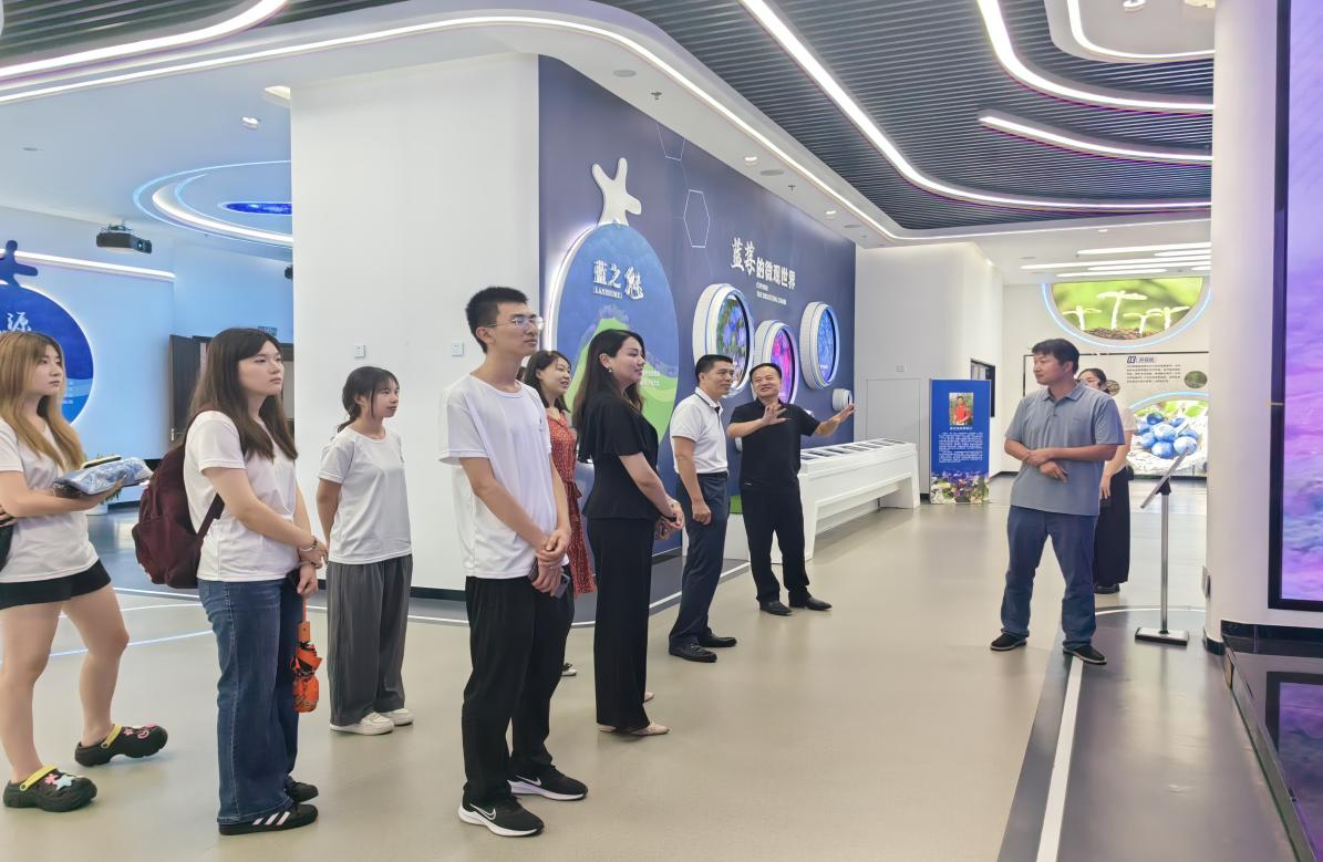 实践团队首先到达日照农业发展集团并受到集团党委副书记、总经理赵丽,集团党委副书记滕飞等领导的热情接待。随后团队前往陈疃镇的蓝莓种植基地和南湖镇的茶叶种植加工基地,这些产业基地作为乡村振兴的重要载体,展现了现代农业的勃勃生机和广阔前景。团队成员通过实地考察,详细了解蓝莓和茶叶的种植技术、市场销售情况以及产业带动农民增收的实际成效,加深了队员们对乡村振兴战略的深刻认识。